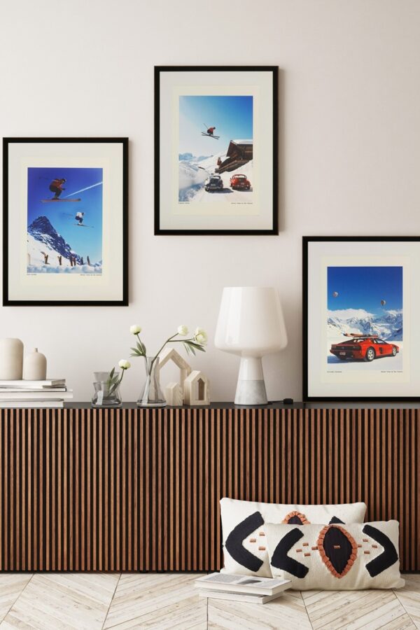 Et stilig og nostalgisk motiv som fanger følelsen av vinter og eventyr. Trykket på høykvalitets papir med nøytral passepartout og sort ramme som fremhever motivets detaljer og farger.