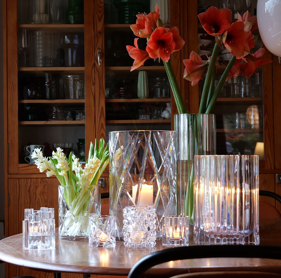 For å bevare krystallens glans og holdbarhet anbefales skånsom håndvask i varmt vann med mild såpe. Skyll godt og tørk forsiktig med en lofri klut.